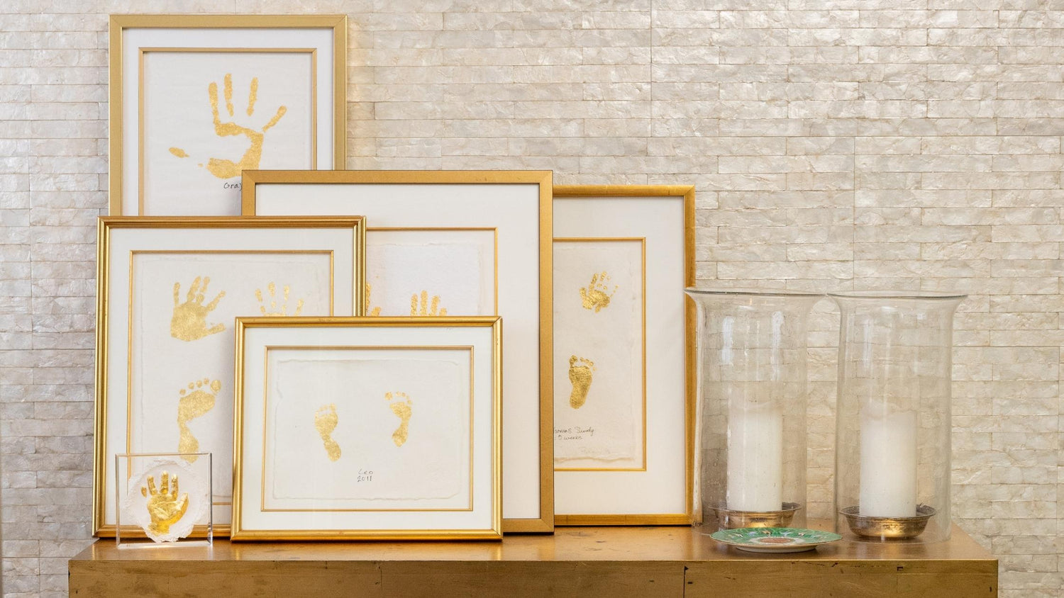Impressions of your baby's (or fur baby) hands or feet captured in 23 karat gold or platinum. They are the perfect gift for newborns, first birthdays, baby showers, and anniversaries.